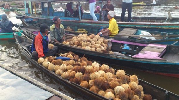 3 foto di barisan atas merupakan salah satu tempat wisata paling terkenal di Banjarmasin, Indonesia, dan mungkin juga di dunia. Kok bisa? Ya bisa lah, itulah hebatnya Banjarmasin. Ada yang tahu namanya? Namanya ialah “pasar terapung” atau lebih dikenal dengan istilah “float market” oleh para wisatawan asing.